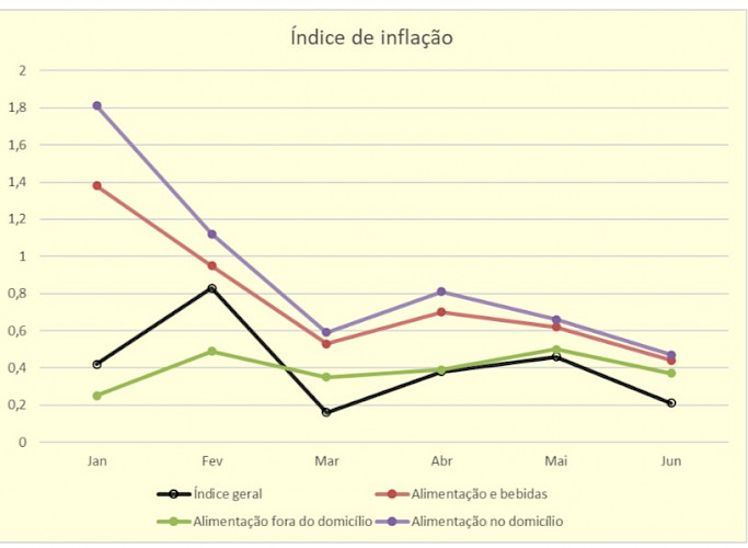 Dados do Índice Nacional de Preços ao Consumidor Amplo (IPCA), divulgados pelo IBGE na última quarta-feira (10), indicaram que a inflação da alimentação fora por lar cresceu 0,37% em junho, frente a um aumento de 0,44% dos alimentos e bebidas, principais insumos de bares e restaurantes, refletindo o desafio financeiro enfrentado pelos empreendedores.